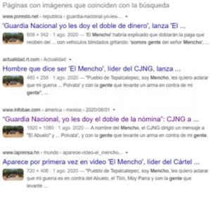 Al realizar la búsqueda inversa en Google, los resultados arrojados en esa fecha fueron varias publicaciones realizadas por medios de comunicación de México. Las imágenes muestran a decenas de hombres fuertemente armados con rifles.