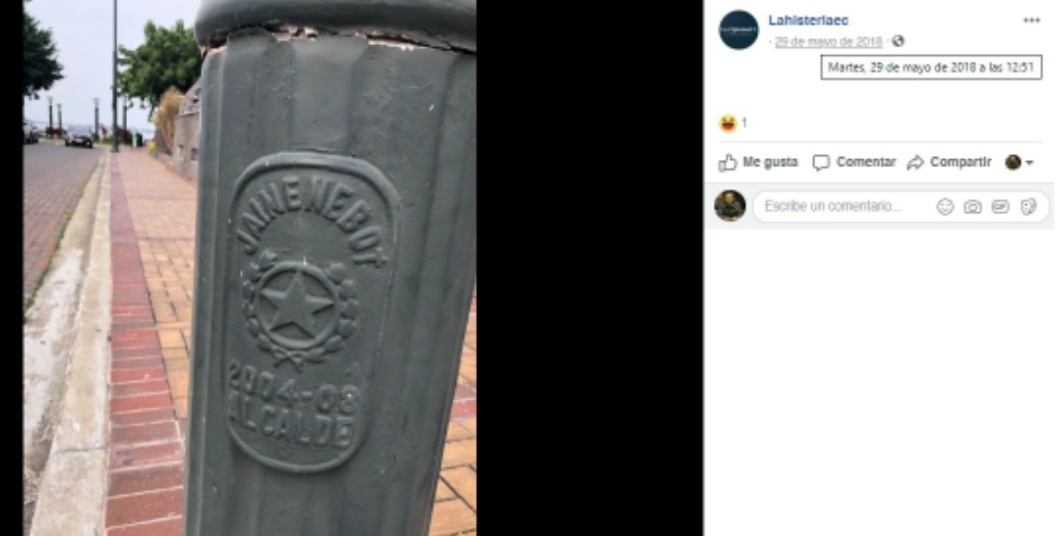 4.- Lahisteriaec tiene 12.800 me gusta y es la ‘fanpage’ más antigua de las analizadas. Su primera publicación es del 28 de mayo de 2018 y es una fotografía de una placa en que se lee “Jaime Nebot 2004-08 Alcalde”. Sin embargo, a partir del 27 de enero de 2019 a las 11:32 sus publicaciones se sintonizan con las demás.