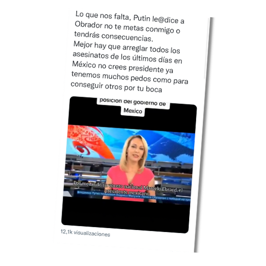Chay kuyukshuyupika shuk killkakunata churashka, chaywanmi rikuchin: “Mexicomanta pushakka mana allikachishpami chay pushakmanta rikukun”. Kipaka llulla willaykunata nin: “Vladimir Putinka Mexico pushaktami ama satirichun nishpami kutichishka. Mamallakta pushakka ña achiklla López Obradorta nirkanchik ama satirichun Rusia ruraykunapi mana kashpaka consecuencias charinkichikmi”.