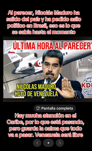 En TikTok circuló un video que asegura que Nicolás Maduro “huyó de Venezuela”. El contenido afirma que el mandatario abandonó el país por miedo a un supuesto escenario de escalada militar con Estados Unidos.