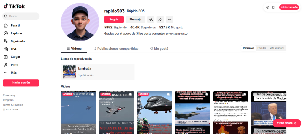 El contenido se difundió principalmente en TikTok, desde el usuario @rapido503 donde se viralizó en cuentas que difunden rumores sobre política internacional.
