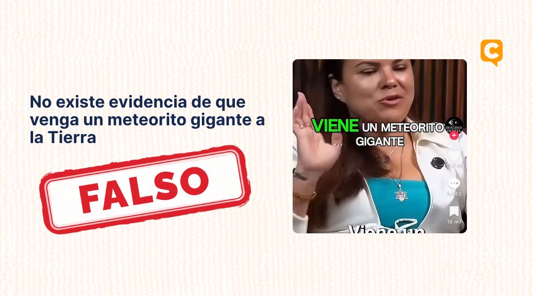 - 🔎 Qué verificamos: Publicaciones virales que anuncian la llegada de un “meteorito gigante que destruirá la Tierra”.