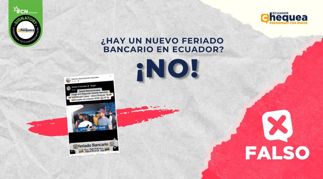 Bajo este contexto, dos publicaciones, una en TikTok y otra en Facebook, aseguran que hay un nuevo feriado bancario en el país. Se califica este contenido como falso. Ecuador no tiene un nuevo feriado bancario. La Constitución ecuatoriana prohíbe declarar un feriado bancario que afecte a todo el sistema financiero, tal como ocurrió en 1999. Las operaciones bancarias en instituciones privadas, cooperativas y en línea continúan con normalidad general, salvo en los casos puntuales de entidades específicas bajo supervisión o liquidación.