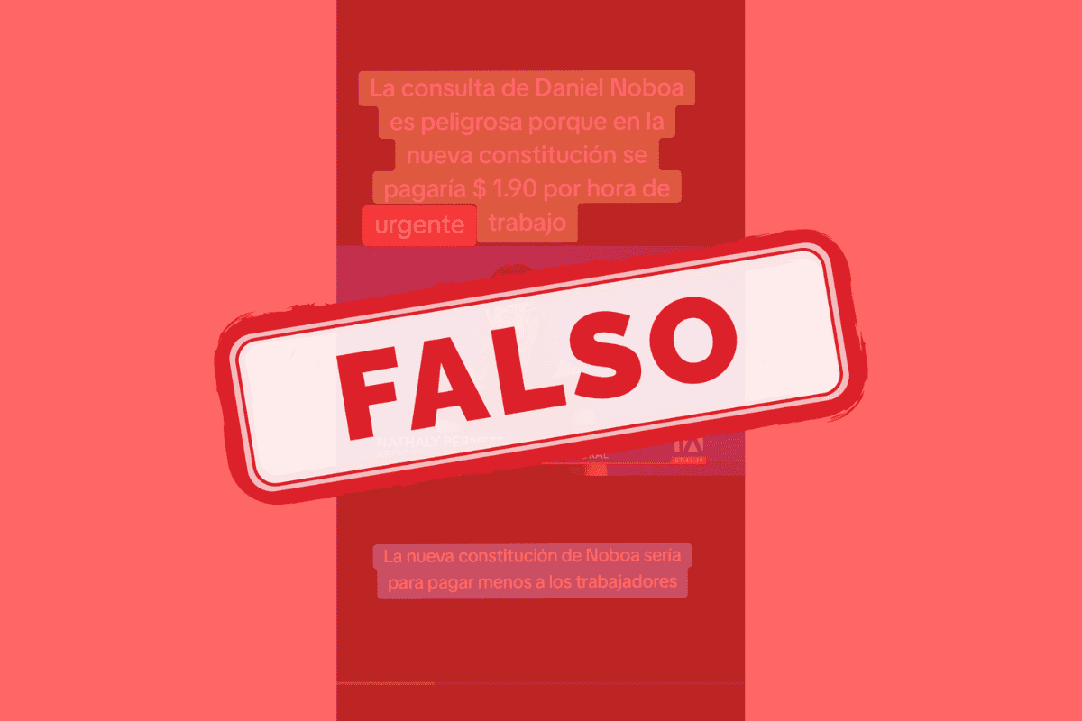 - Qué verificamos: Un video de TikTok que afirma que la nueva Constitución que propone Daniel Noboa incluirá el trabajo por hora con un pago de USD 1,90 la hora.