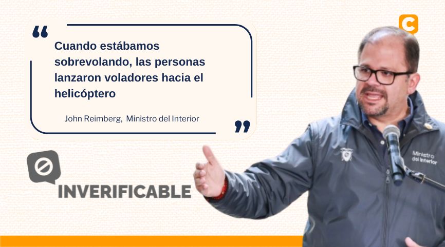 El ministro John Reimberg afirmó que durante una movilización en Quito, el 12 de octubre, los manifestantes lanzaron voladores al helicóptero en el que se trasladaba. Sin embargo, no existen registros audiovisuales ni reportes periodísticos que confirmen este hecho.