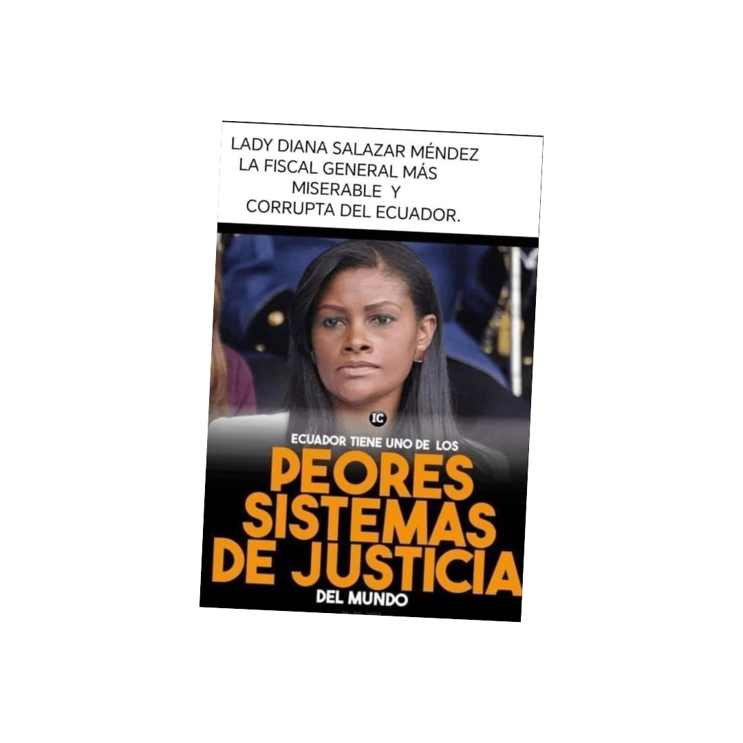 Últimamente, se han compartido notas desinformativas que involucran a la fiscal, Diana Salazar. Aunque se han emitido estudios sobre el sistema judicial ecuatoriano, ninguno se ha dado por parte de una organización reconocida globalmente.