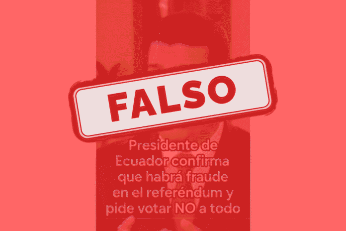En TikTok circula un video en el que un hombre, que aparenta ser periodista o político, afirma que el presidente Daniel Noboa “ya reconoció que habrá fraude en la consulta popular” y por eso “pide votar NO en todas las preguntas”. El contenido se presenta como si fuera un comentario informativo o filtración veraz.