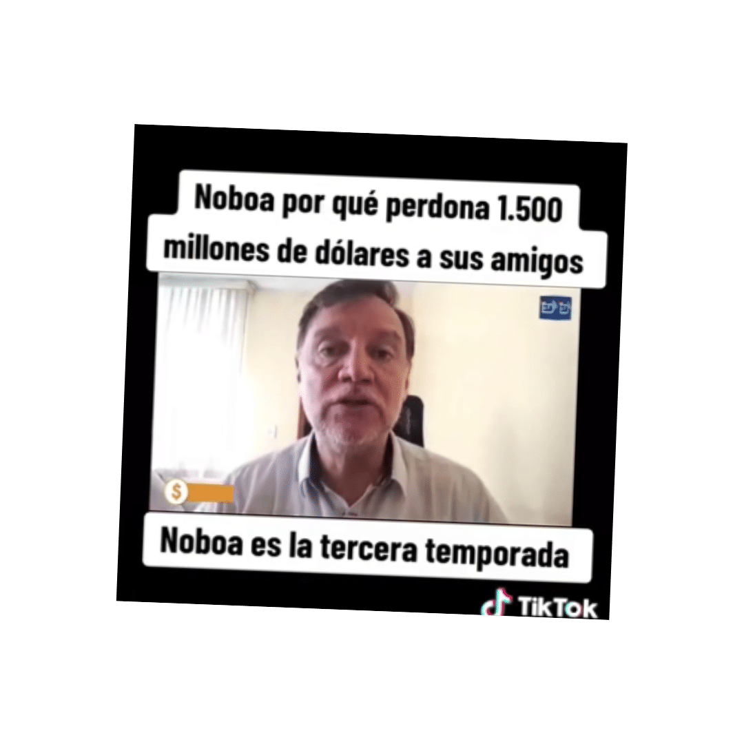 La publicación viene acompañada de un texto en el que se lee: “Noboa perdona $1.500 millones de dólares a sus amigos. Noboa es la tercera temporada”. Ésta, además, cuenta con más de 1.700 reacciones y 3.600 compartidos. La desinformación, en los últimos días, se ha valido de este tipo de temas, que involucran al nuevo Gobierno de Noboa para llegar a los celulares de los ecuatorianos.