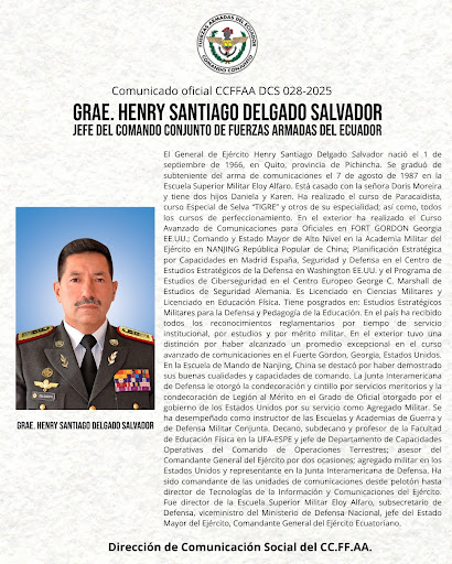 A Delgado le espera cumplir la orden de una nueva fase en el combate de los grupos criminales con un alto mando militar, renovado ayer mediante los decretos ejecutivos 111 y 112, que quedó integrado de la siguiente manera: el general del Ejército Henry Delgado como jefe del Comando Conjunto de las Fuerzas Armadas; el contralmirante Ricardo Unda como comandante general de la Fuerza Naval; el general Iván Vásconez como comandante general del Ejército y; el brigadier general Mauricio Salazar comandante general de la Fuerza Aérea.