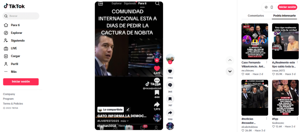 El contenido circula en TikTok, y fue compartido desde la cuenta @stephan3058 donde se compartió un clip de una reunión de la OEA acompañado de un texto que afirma que el organismo “acaba de condenar” a Noboa.