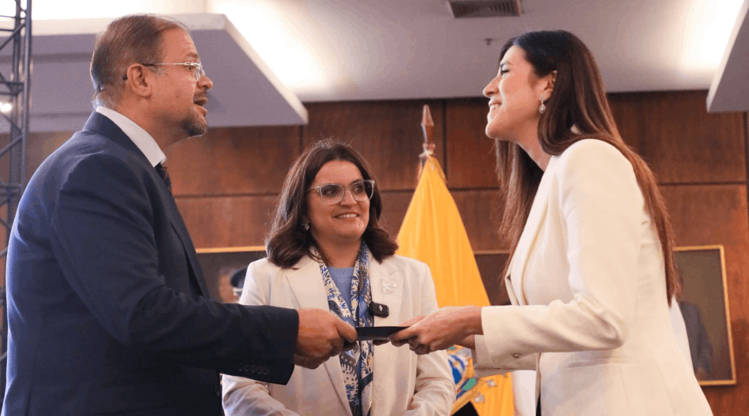 John Reimberg, Ministro del Interior, entregó el proyecto de Ley a la jefa de la bancada oficialista, Valentina Centeno, para que cumpla con el trámite legislativo y como testigo de honor estuvo presente la Vicepresidenta de la República, María José Pinto.