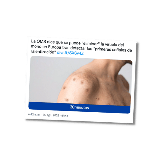 En Twitter circula una imagen que asegura que la OMS dice que se puede «eliminar» la viruela del mono en Europa tras detectar las «primeras señales de ralentización». Está información es cierta.