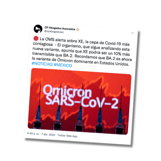 OMSka XE mushuk unkuymantami willachikun nishpami Twitter pankapimi llukchirka . “Kay tantanakuyka, kay mushuk unkuymanta taripayta rurakunmi, chayka BA.2 10% yalli ashtawan ñapash yallichik kan. BA.2 kunanka Ómicronmanta Estados Unidospi ashtawan kan”, shinami killkashka. Chayka shinami kan.