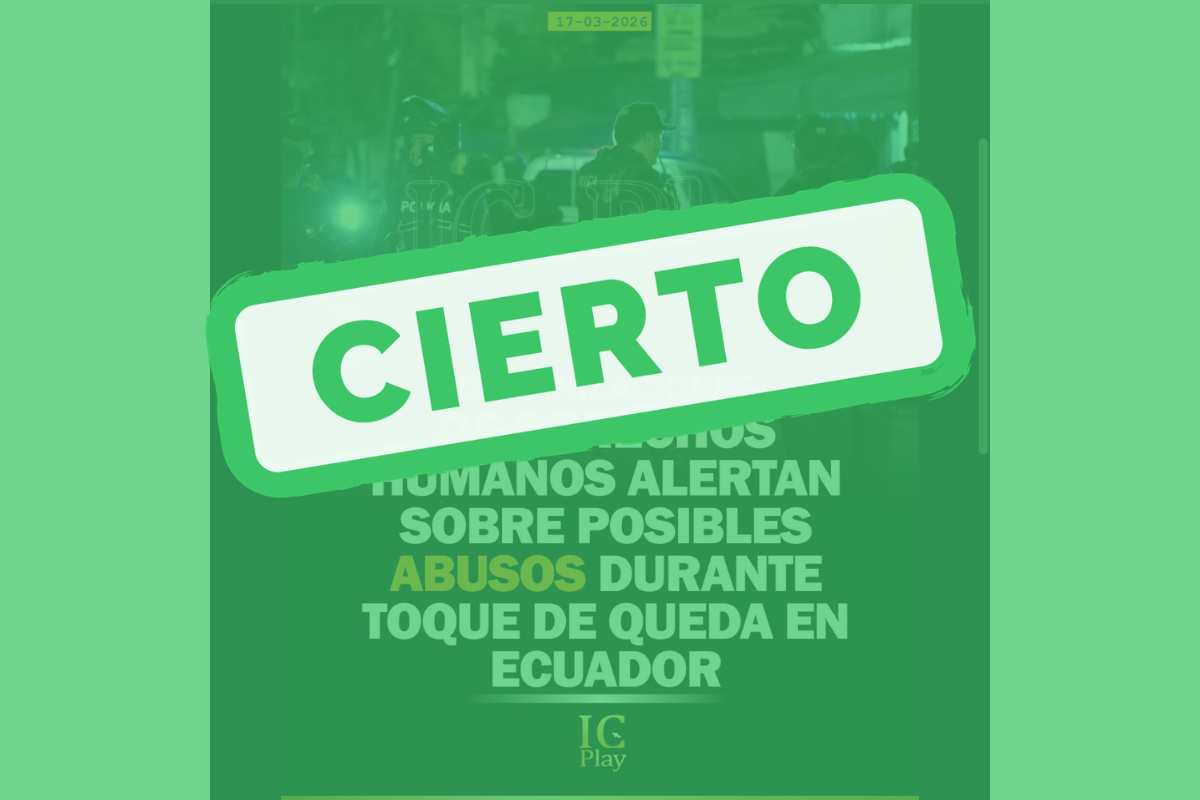 En redes sociales, específicamente en una publicación difundida por la página IC Play, circula una imagen con la afirmación de que organizaciones de derechos humanos han alertado sobre posibles abusos durante el toque de queda en Ecuador.