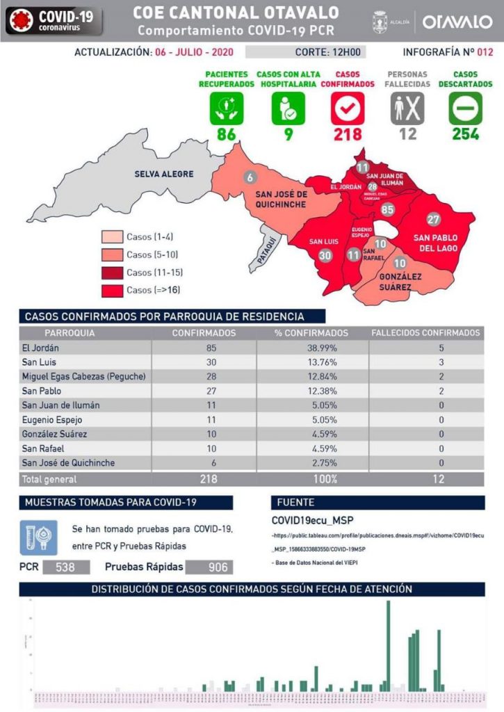 En junio se conmemoraban las celebraciones del Inti Raymi (solsticio de junio) y hubo quienes a pesar de las restricciones salieron a bailar y participaron de aglomeraciones. En las siguientes semanas, los efectos se podrían reflejar en un pico de contagios. Hasta este 6 de julio, en Otavalo se han detectado 218 pacientes de COVID-19 y 12 fallecidos.
