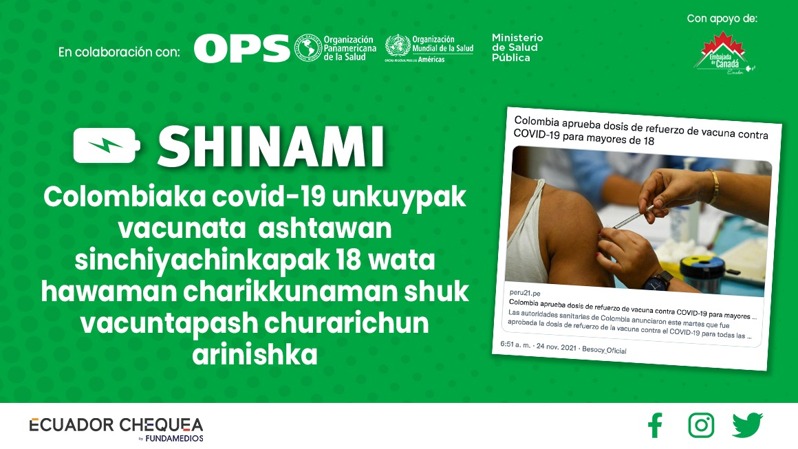 Twitter pankapi shuk willayta llukchirka Colompiapi covid-19 unkuypak vacunata sinchiyachinkapak kutin shuk vacunta churarinata arinirka nishpa. Chay willayka shinami kan.