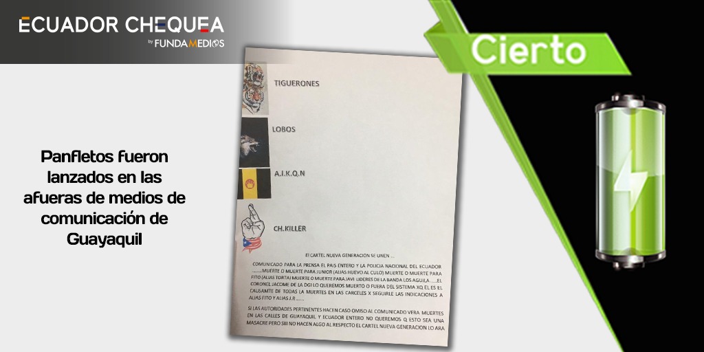 Medios televisivos como TC Televisión y RTS informaron del hecho. Según sus reportes, motociclistas acudieron a sus instalaciones la madrugada del 24 de febrero y lanzaron dichos panfletos a la calle.