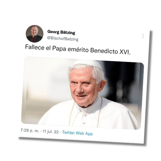 Twitter pankapika, Conferencia Episcopal Alemaniamanta pushak, Georg Bätzing shutiwanmi Benedicto XVI wañurka nispa llukchirka, payka 2005 watamanta 2013 watakamanmi apunchik wasikunapa pushak karka.