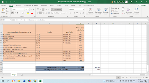 Ecuador Chequea tuvo acceso al listado de instituciones que se han visto afectadas en este se observan los nombres, el cantón, provincia y número de estudiantes que tendrán que recibir sus clases en la virtualidad.