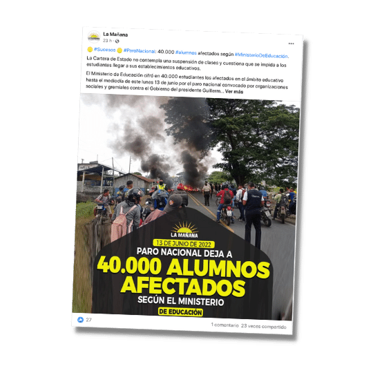 En la red social Facebook circula una imagen en la que se asegura que 40.000 estudiantes no podrán asistir a sus unidades educativas. Esta información es cierta, pues, la ministra de Educación lo confirmó.