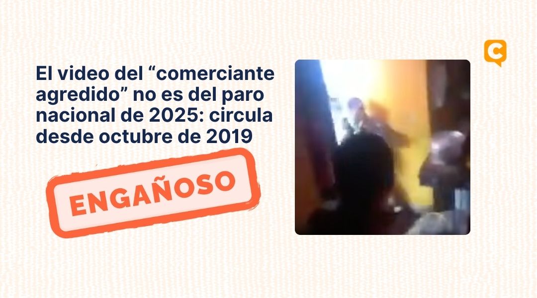 - Qué verificamos: Un video breve en el que varias personas agreden a un comerciante dentro de un local. Se difunde como si hubiera ocurrido en el paro de 2025.