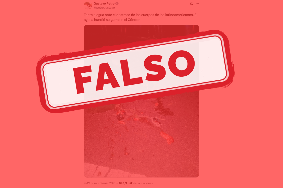 La publicación del presidente Gustavo Petro es FALSA. La fotografía que difundió no muestra a un militar asesinado durante los bombardeos de Estados Unidos en Venezuela, sino a una de las víctimas de un accidente de tránsito ocurrido en octubre de 2025 en el estado Apure. El uso de esta imagen fuera de contexto desinforma sobre las consecuencias reales de la incursión militar y contribuye a amplificar narrativas falsas en un escenario de alta tensión política y militar. La reutilización de imágenes antiguas para ilustrar hechos actuales distorsiona la comprensión pública del conflicto y magnifica el impacto emocional sin sustento verificable.