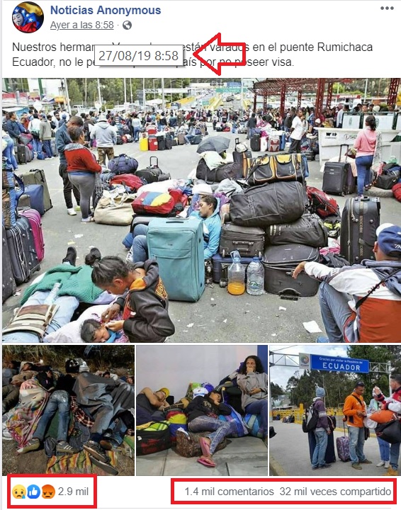 En este contexto, se difunden imágenes de personas con nacionalidad venezolana reunidas en Rumichaca, que no se corresponden a la protesta ocurrida el 26 de agosto en la frontera norte entre Colombia y Ecuador. Las fotografías no son actuales y fueron capturadas durante oleadas migratorias anteriores.