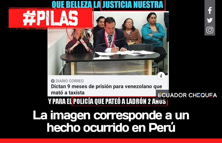 En el falso post, relacionan el hecho ocurrido en Perú con el asesinato de un taxista, sucedido en Ambato el día 5 de mayo del 2018, en el que un hombre de nacionalidad venezolana paró el taxi después del mediodía en la provincia de Tungurahua. El delincuente asesinó con múltiples puñaladas a Manuel Alarcón, chofer de 54 años, para robarle.