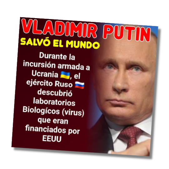 Sin embargo, a través de redes sociales se difundió un post en el que se asegura que Putin salvó al mundo porque descubrió laboratorios biológicos en Ucrania, financiados por EE.UU. La información es engañosa y explicamos por qué.