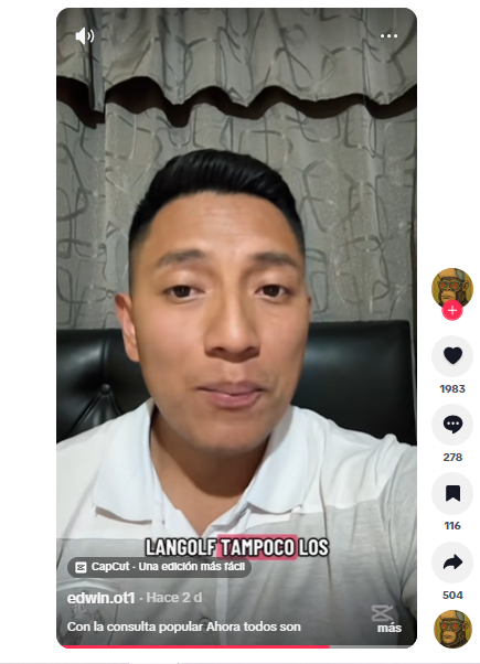 El video se compartió desde el perfil edwin-ot 1 en, TikTok, sin indicar la fuente de origen ni documentos oficiales que respalden la afirmación.