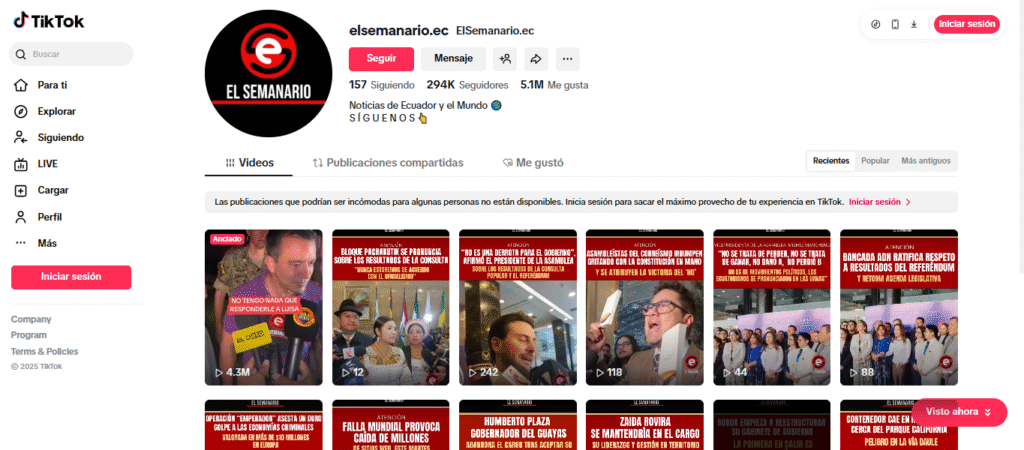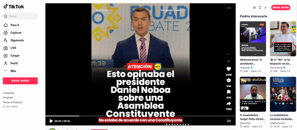 El contenido fue publicado, desde la cuenta, elsemanario.ec, posicionada en TikTok mediante un clip que reportaba la salida inmediata de la ministra y sugiere que forma parte de un reacomodo de gabinete tras los resultados adversos para el Gobierno en la consulta popular.