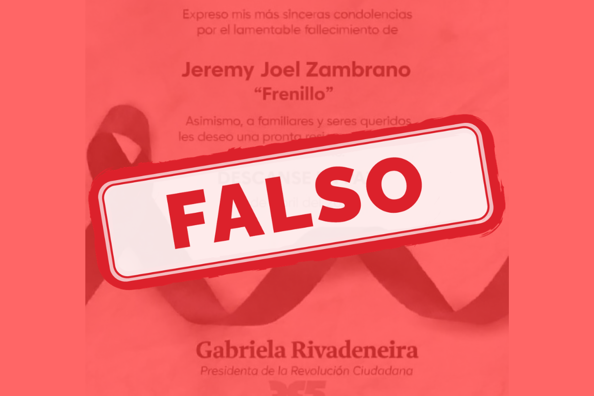 ¿Qué verificamos? Una supuesta publicación de Revolución Ciudadana expresando condolencias por la muerte de alias “Frenillo”.