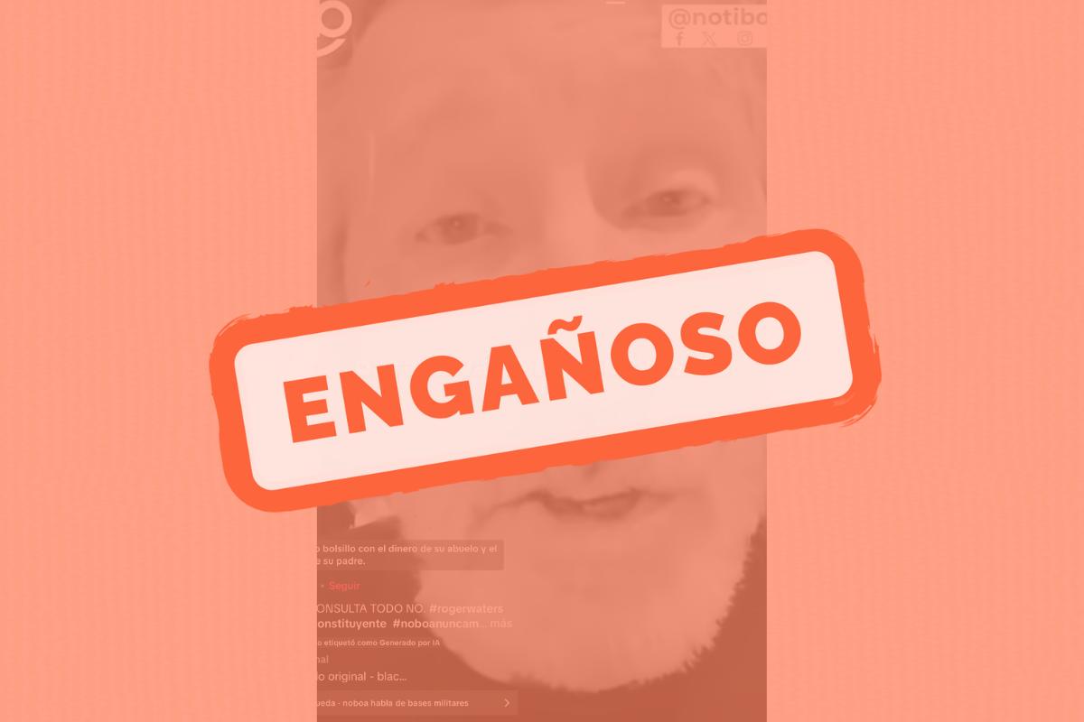 El video que se difunde en TikTok es ENGAÑOSO porque utiliza un clip antiguo para dar la impresión de que Roger Waters interviene en el debate político actual. Su mensaje fue grabado en abril de 2023, en apoyo a la candidatura de Luisa González, y no guarda relación con la consulta popular convocada por Daniel Noboa. Este tipo de reutilización de material antiguo para inducir interpretaciones políticas falsas es una práctica común de desinformación digital.