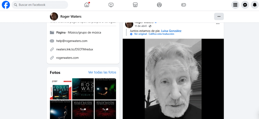 Sí. El video original está disponible en la página oficial de Facebook de Roger Waters, publicado el 11 de abril de 2023. Ninguna cuenta verificada del músico ha compartido mensajes recientes relacionados con la consulta de 2025.