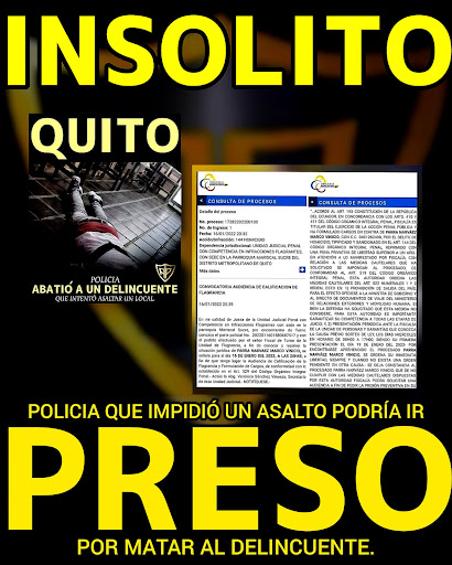 Defense ec mostró capturas de la página del Consejo de la Judicatura donde se confirma que “se han formulado cargos por homicidio en contra del policía, que el pasado sábado fue herido al impedir un asalto en el norte de Quito, y en el que uno de los infractores fue neutralizado y perdió la vida. Nuevamente un policía, está siendo procesado”.