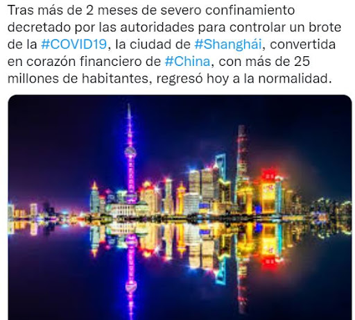 Medios como France24, CNN y DW informaron al respecto. Este miércoles, las autoridades del gigante asiático pusieron fin al estricto confinamiento. A la medianoche se finalizó el encierro y algunos ciudadanos de la mega urbe celebraron su libertad al lanzar fuegos artificiales. Pese al fin del confinamiento, en Shanghái se mantienen algunos comercios cerrados y los que abren funcionan al 75% de su aforo.