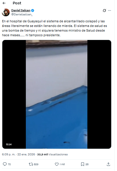 Qué verificamos: Una publicación en X que asegura que colapsó el sistema de alcantarillado en un hospital de Guayaquil.