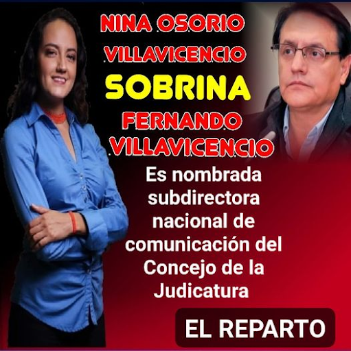 Nina Osorio Villavicencio es licenciada en comunicación, con mención en prensa radio y televisión. Y sí, se trata de la sobrina del asambleísta y presidente de la Comisión de Fiscalización, Fernando Villavicencio. Con esta información, una página de Facebook publicó que Osorio fue nombrada como Subdirectora Nacional del Consejo de la Judicatura. Según el post, esto es parte de un reparto de cargos del Gobierno, en el que tuvo que ver el legislador.