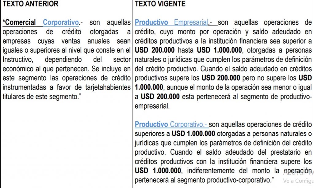 En el documento Modificaciones a la normativa que regula el Sistema de Tasas de Interés publicado, en 2009 por el BCE, se definen a las tasas de interés según la siguiente clasificación: Productiva-Corporativa, Productiva-Empresarial y Productiva-Pymes.