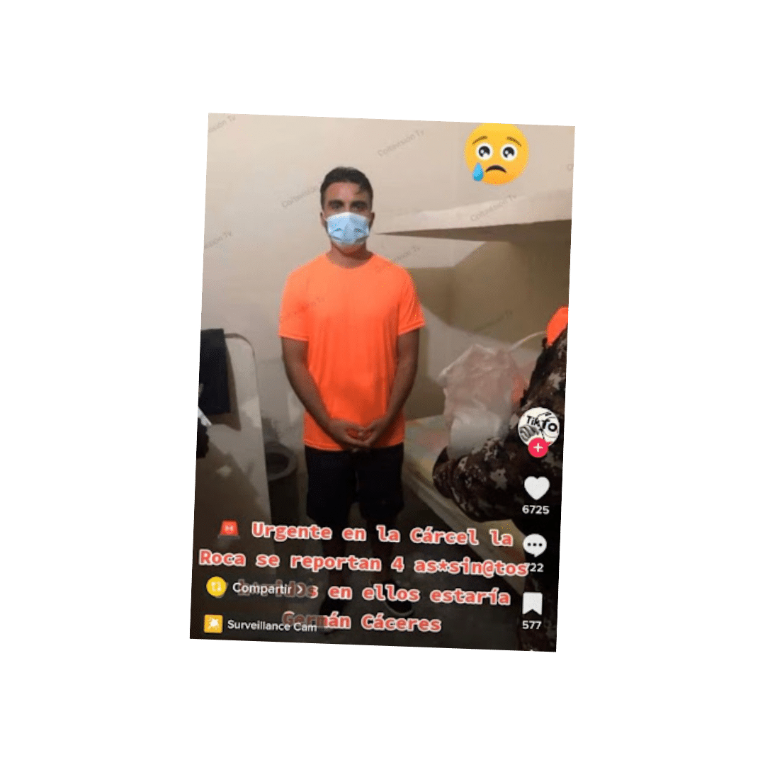 En TikTok, circulaba un video que describe que en la cárcel ‘La Roca’ se reportan 4 asesinatos, y que entre ellos estaría Germán Cáceres. Está información es engañosa. El SNAI informó que en los enfrentamientos fallecieron tres presos y otro resultó herido. Ninguno de ellos era Germán Cáceres.