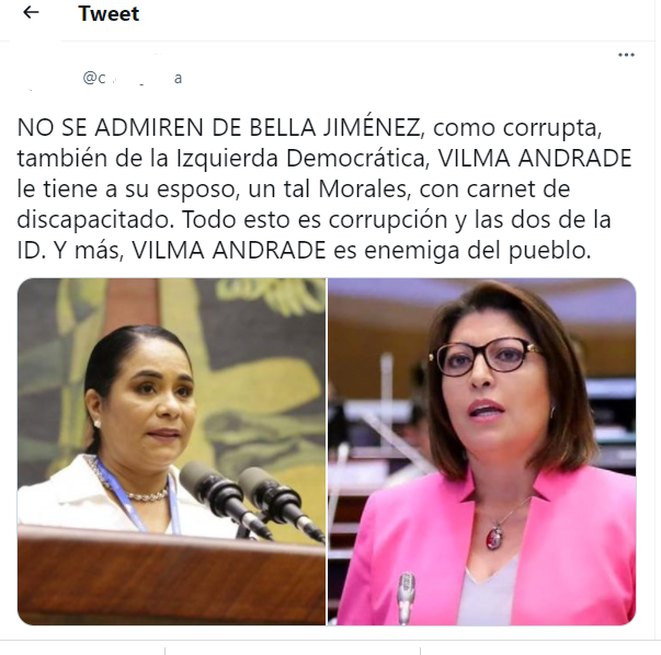 Twitter, Wilma Andrade le tiene a su esposo con carné de discapacidad