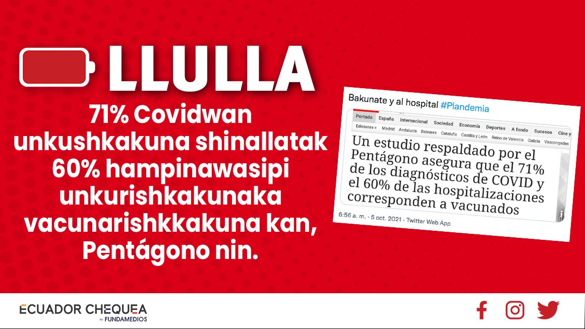 Twitter pankapi shuk willayta yallichinakun chaypimi nikun Pentagonoka 71% Covid-19 unkushkakuna shinallatak 61% hampina wasipi kakkunaka vacunarishkakunami kan. Chay willayka llullami kan.