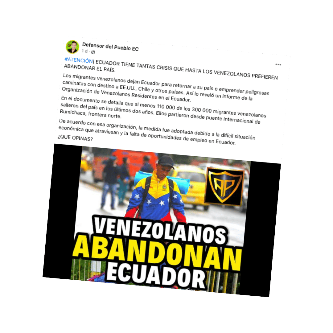 Esta desinformación, incluso se ha degenerado en discursos de odio y de estigmatización, que han sido rechazados y condenados por la gente. En este contexto cabe preguntarse sobre la veracidad de una nueva serie de publicaciones que, desde inicios de este año, dan cuenta de una salida masiva de migrantes venezolanos desde Ecuador hacia otros destinos del mundo.