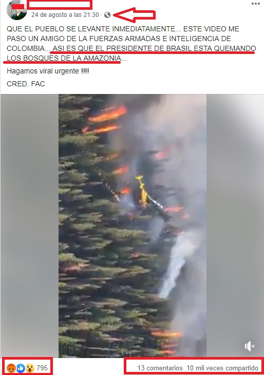 El 4 de agosto de 2019 que se reportó la gravedad de los focos de incendios en parte del Amazonas brasileño que consumen hasta la fecha la reserva natural más importante del planeta, contenidos engañosos en torno al tema son difundidos por las redes sociales.