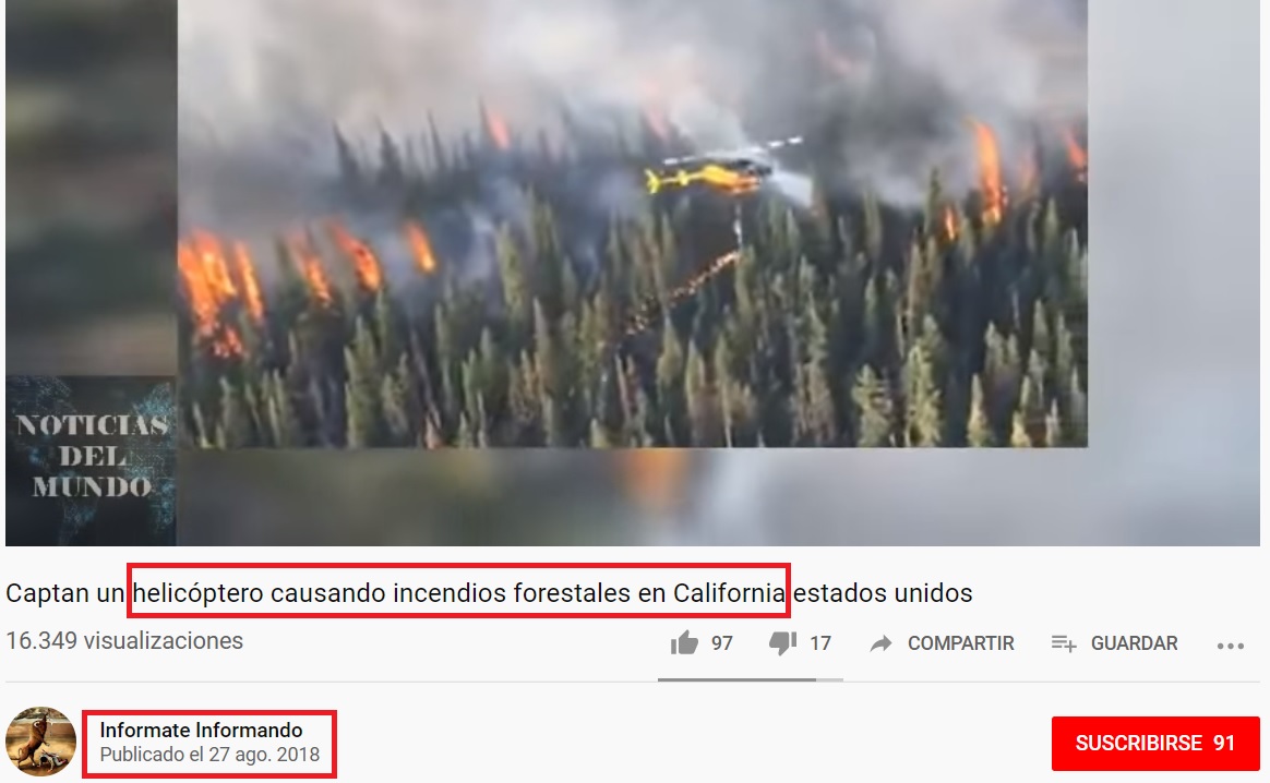 En relación a lo anterior, desde el sábado 24 de agosto en redes sociales se difunde un video donde un helicóptero sobrevuela un bosque esparciendo chispas para provocar incendios con el siguiente texto: