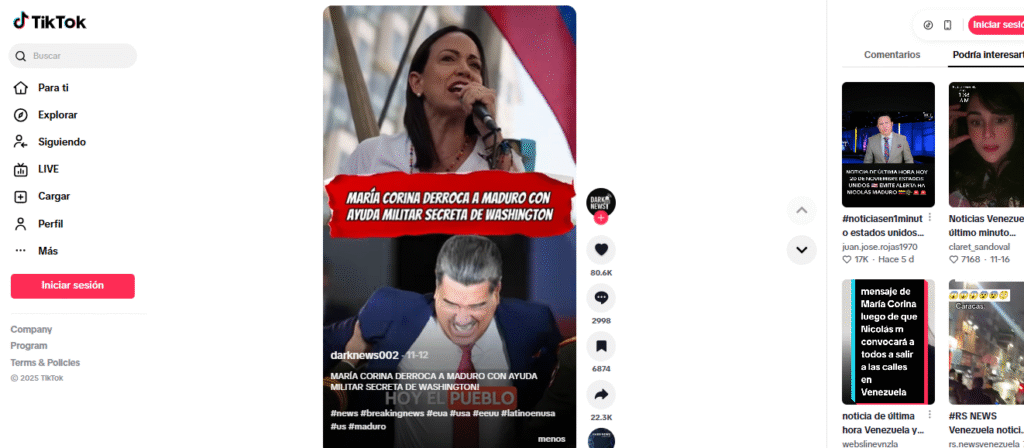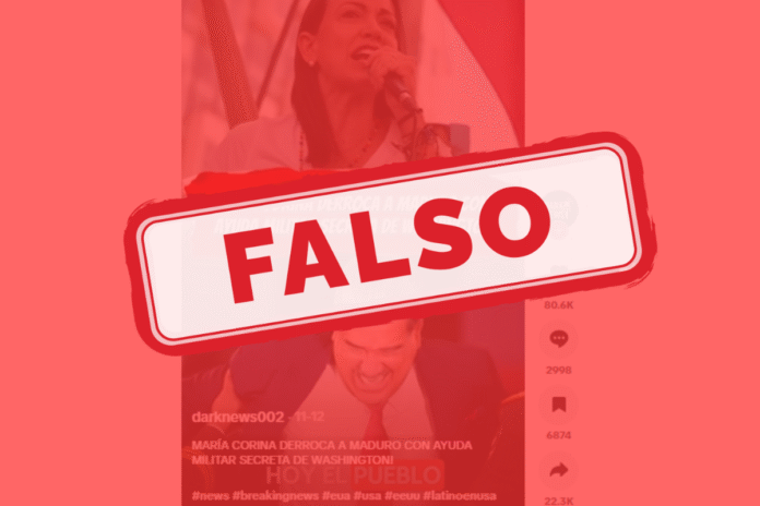 En TikTok se difunde un video que sostiene que María Corina Machado “derrocó” a Nicolás Maduro mediante una operación secreta apoyada por fuerzas militares estadounidenses.