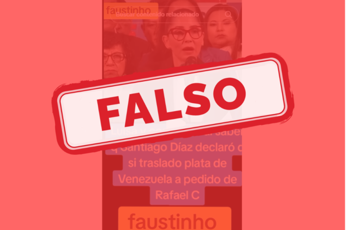 En TikTok circula un video en el que se ve y escucha a Luisa González supuestamente pedir perdón luego de que el exasambleísta correísta Santiago Díaz afirmara haber trasladado dinero desde Venezuela a Ecuador por disposición del expresidente Rafael Correa.