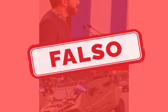 La única “guerra” declarada por el gobierno salvadoreño es la interna contra las pandillas (“maras”), ampliamente documentada y sin relación con Estados Unidos.Rumores sobre conflictos militares o rupturas diplomáticas han sido desmentidos en ocasiones anteriores y frecuentemente se originan en videos manipulados con IA.