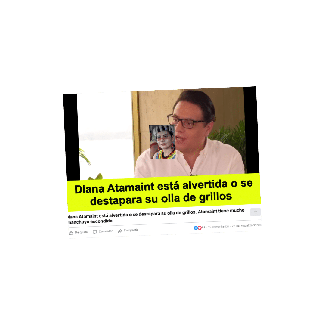 Sobre el posible destape de una ‘olla de grillos’ del que habla la publicación, se realizó un monitoreo de medios y de las redes sociales de Villavicencio. En esta búsqueda no se encontró ninguna advertencia directa contra Diana Atamaint ante un posible escenario de fraude durante el proceso electoral anticipado que vive el país.