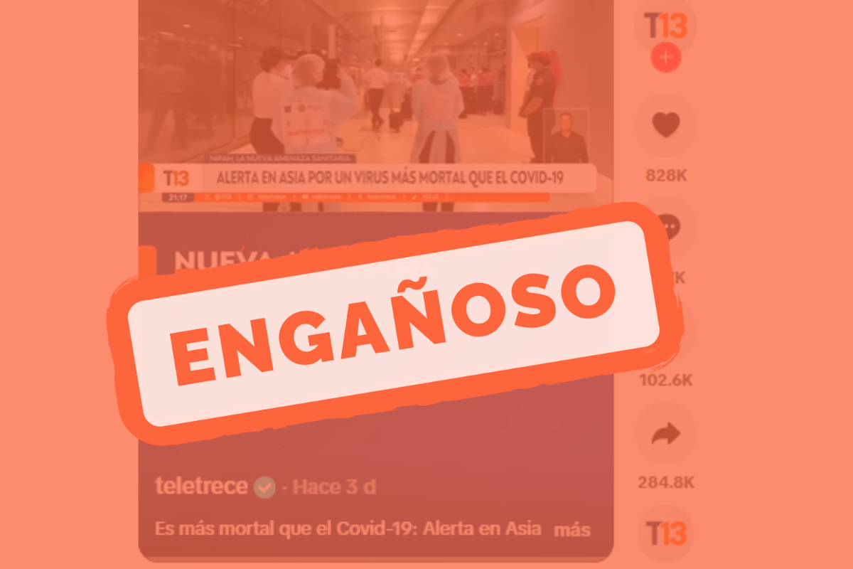 En TikTok circula un video con el texto: “Alerta en Asia por el virus Nipah: Más mortal que Covid-19”. También se afirma que Nipah es “más peligroso”. En TikTok, en un post atribuido a tele13 / T13.